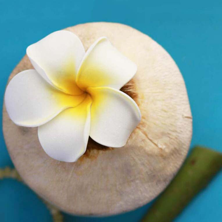 The coconut, intact with juice and meat, acts as the perfect vessel for this tasty concoction—with a pinch of salt Hiwa Kai lava salt for good measure (and mouthfeel). The aroma of the Plumeria ties it all together, instantly transporting you to the white sand beaches of Hawaii.